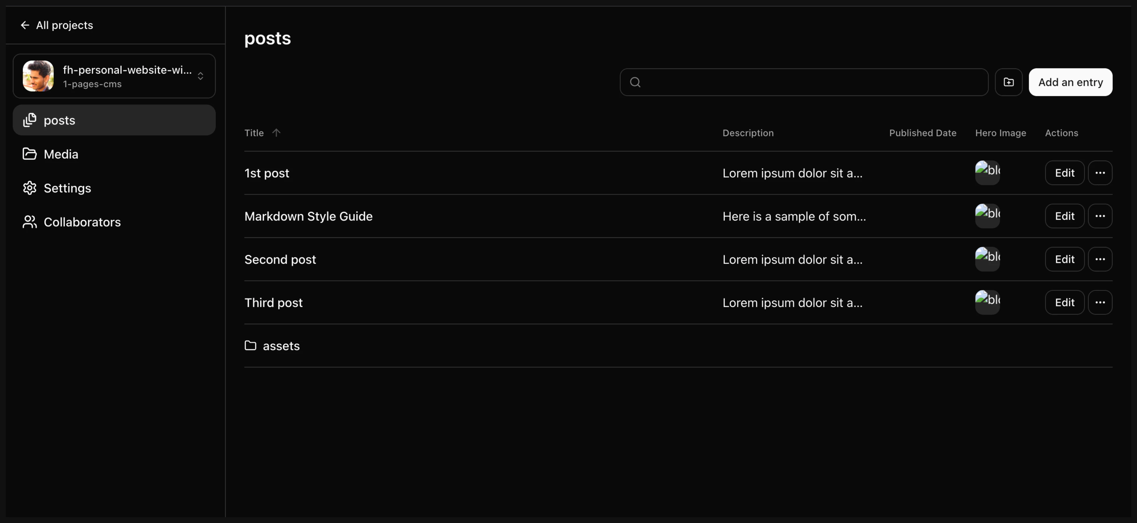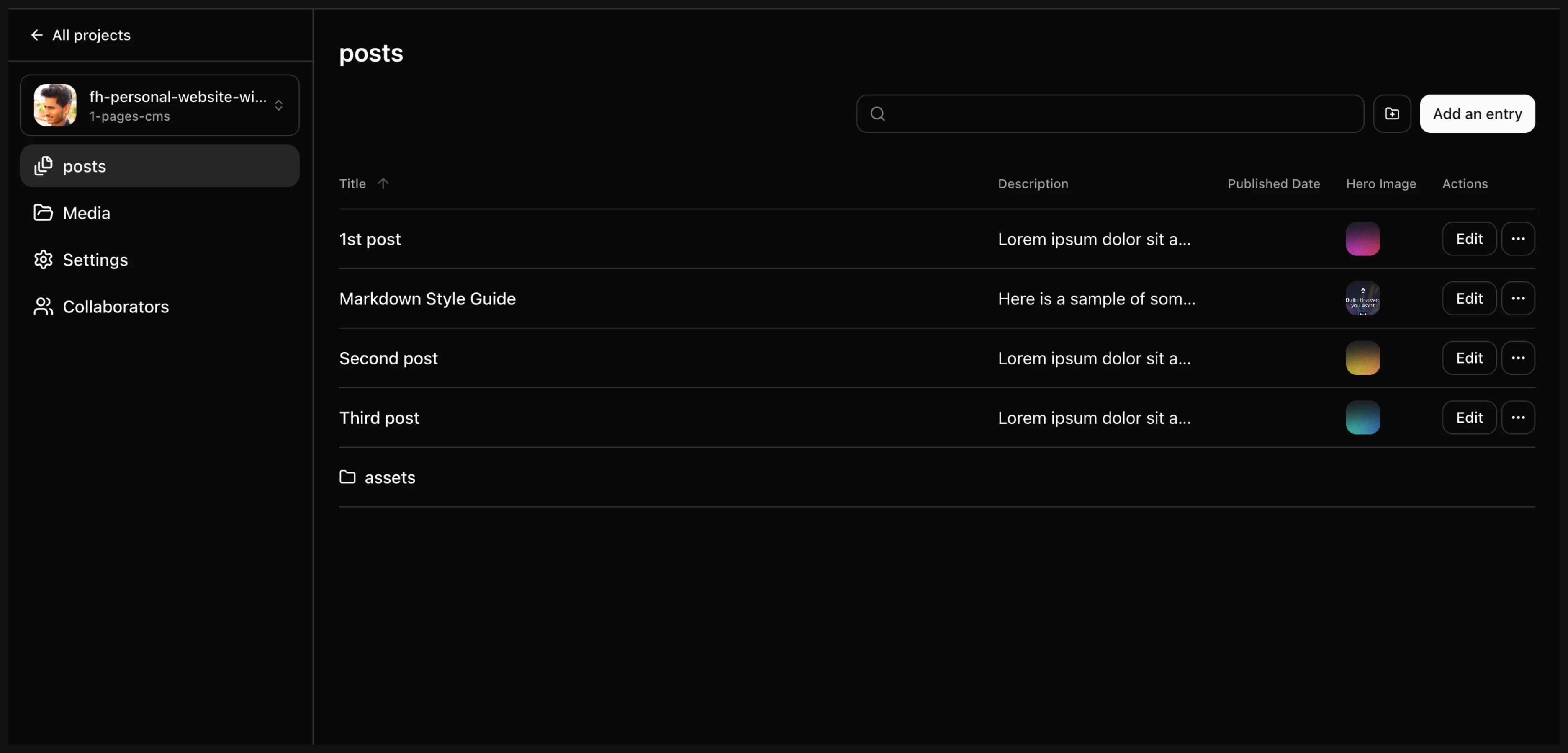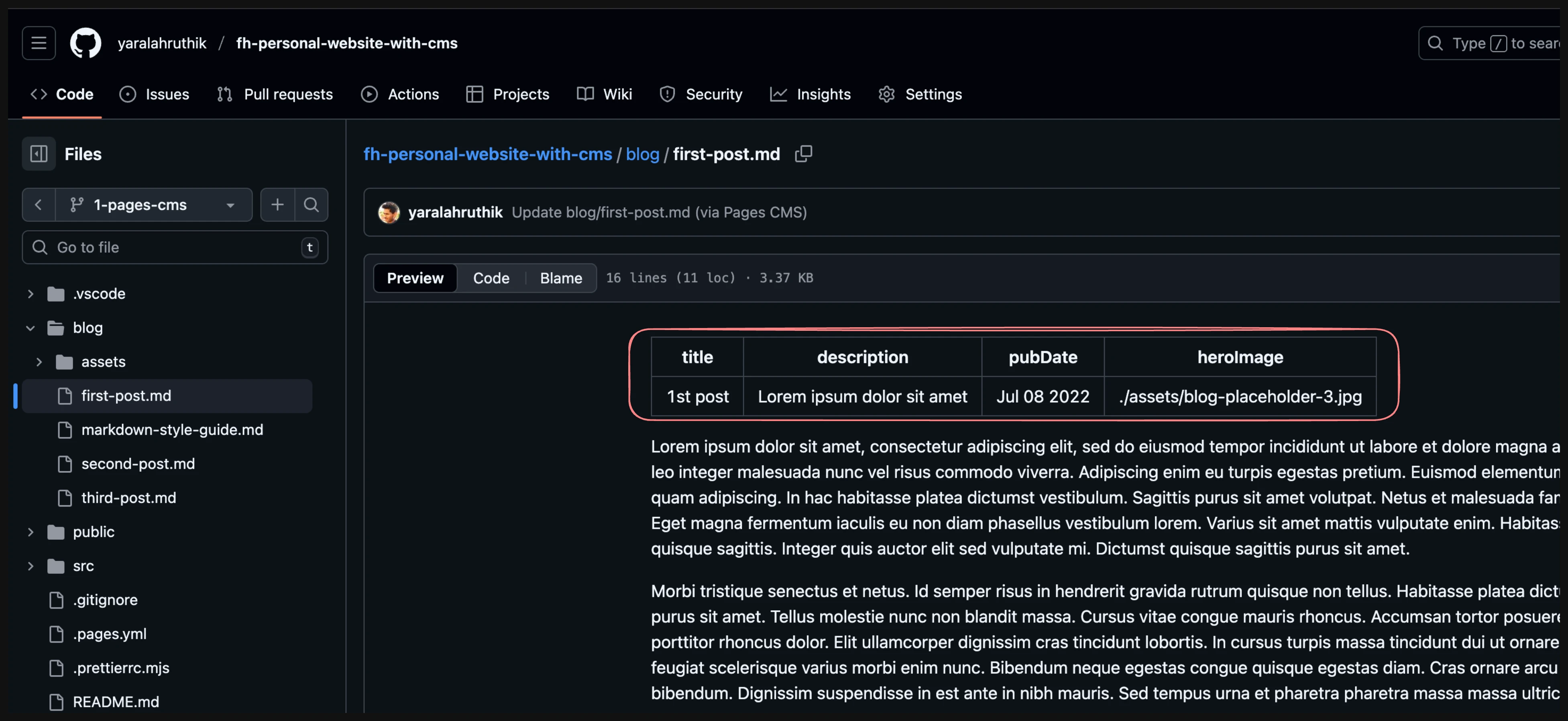 In case you got lost, the final code should be available in the branch 1-pages-cms, the only file you have to care about is the .pages.yml file.