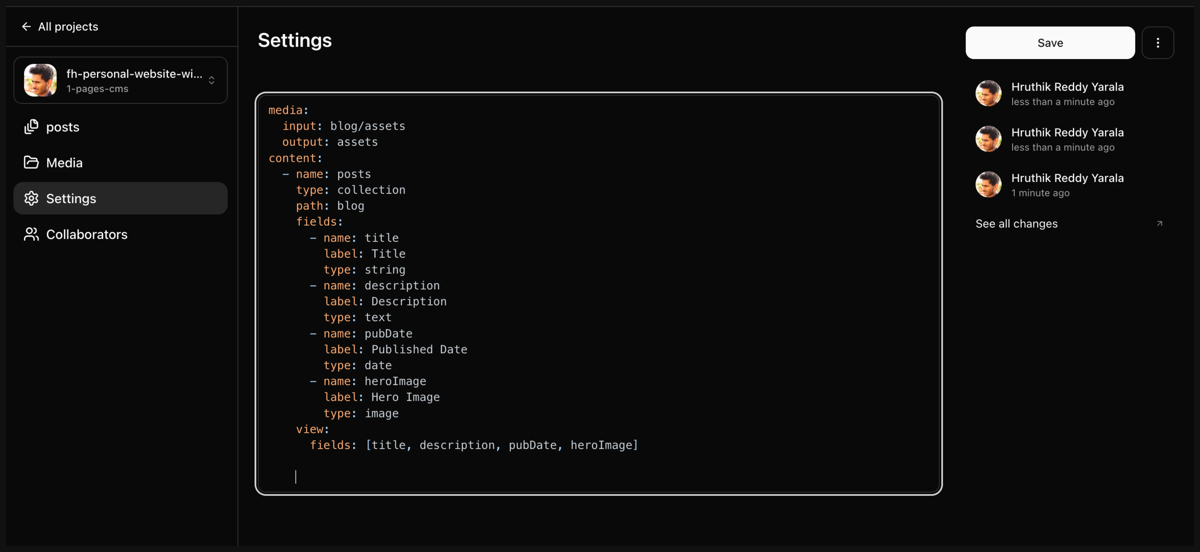 The online version of Pages CMS makes setup easy: you don’t need to self-host, and everything stays in sync with your repo automatically. Though if you want to, you can self-host it easily.